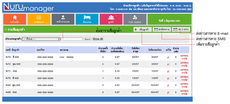 ขาประจำและลูกค้าใหม่ ไม่ต้องเสียเวลาในการบันทึกข้อมูลใหม่ของลูกค้าขาประจำ สามารถเรียกใช้งานได้ทันที เช็คข้อมูลการให้บริการ