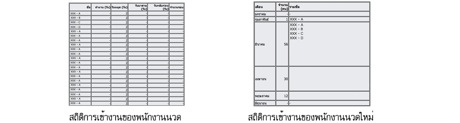 ในส่วนนี้ผู้ที่ใช้โปรแกรมสามารถดูสถิติในการเข้างานของพนักงานปัจจุบันและพนักงานใหม่ได้ โดยการกดปุ่ม " สถิติการเข้างาน "